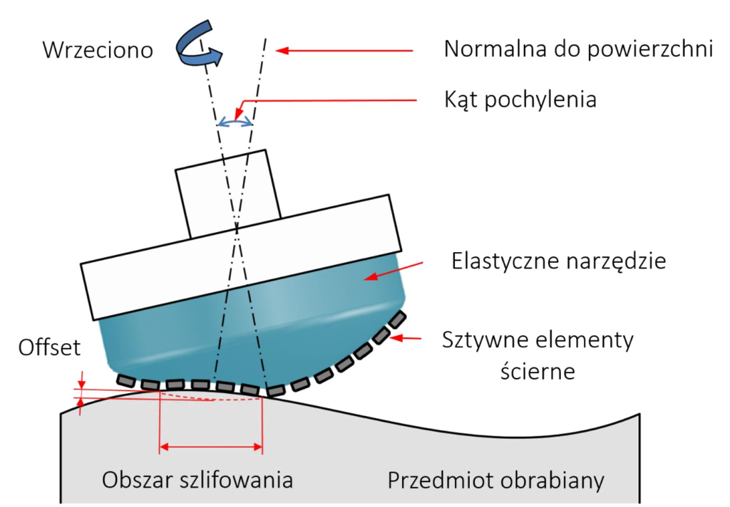 • kierunek i prędkość szlifowania są kontrolowane przez kąt natarcia i wrzeciono